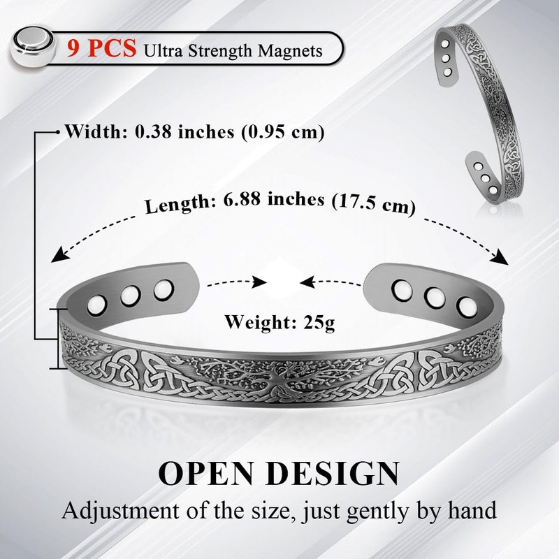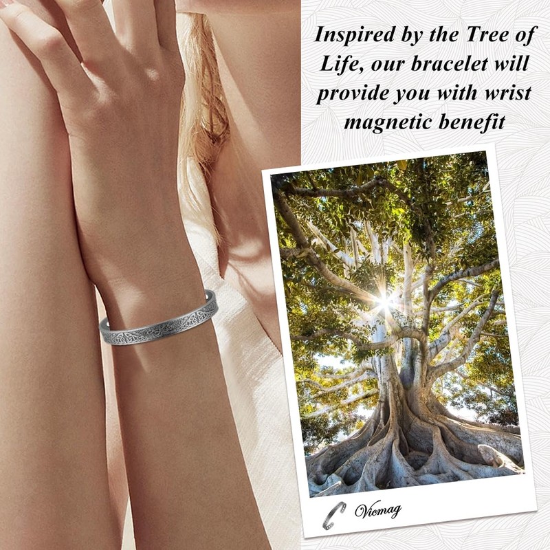 - ✨ Fashion Copper Bangle ✨ Tree of life Pattern design bangle, the oldest and most popular fashion symbols, which is very generous, practical, beautiful. Inspired by ancient simple, but there is no lack of modern fashion sense. It's so stylish that nobody would suspect it's a copper magnetic bracelet.