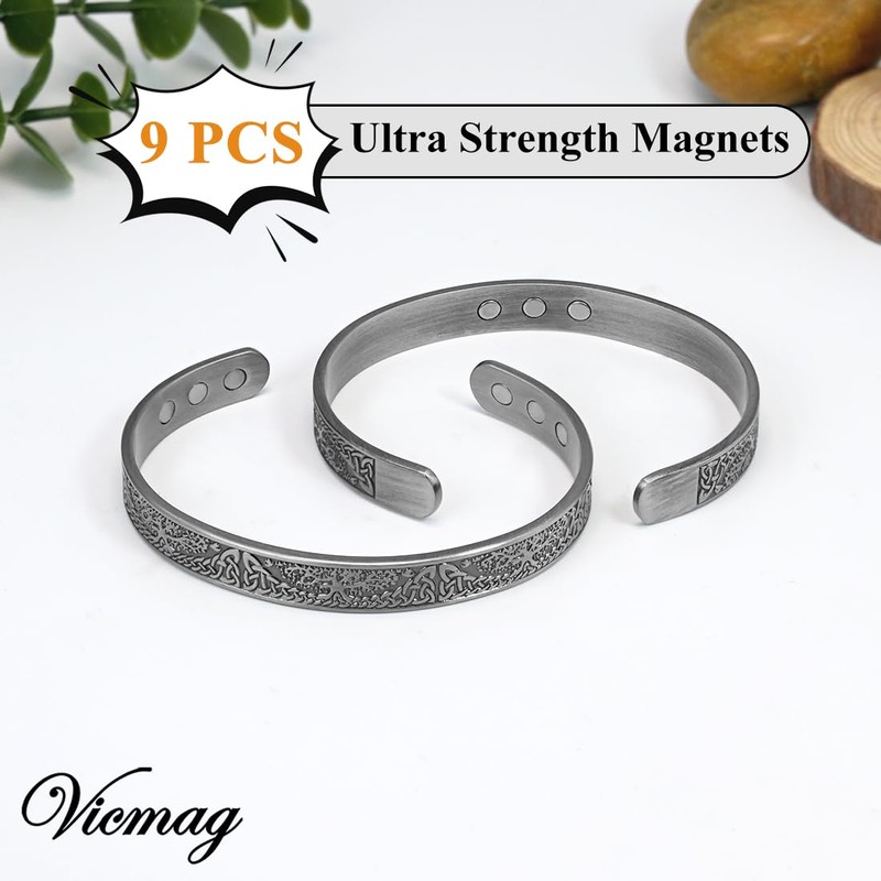 Vicmag Magnetic Bracelet for Women 99.99% Solid Pure Copper Ultra Strength Magnets Adjustable Size with Gift Box (Life Tree Grey)
