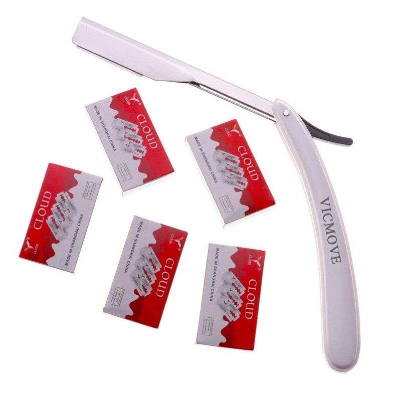 VICMOVE - Navaja de afeitar profesional con 100 cuchillas Derby, 100% acero inoxidable, 1 cuchilla + 100 cuchillas