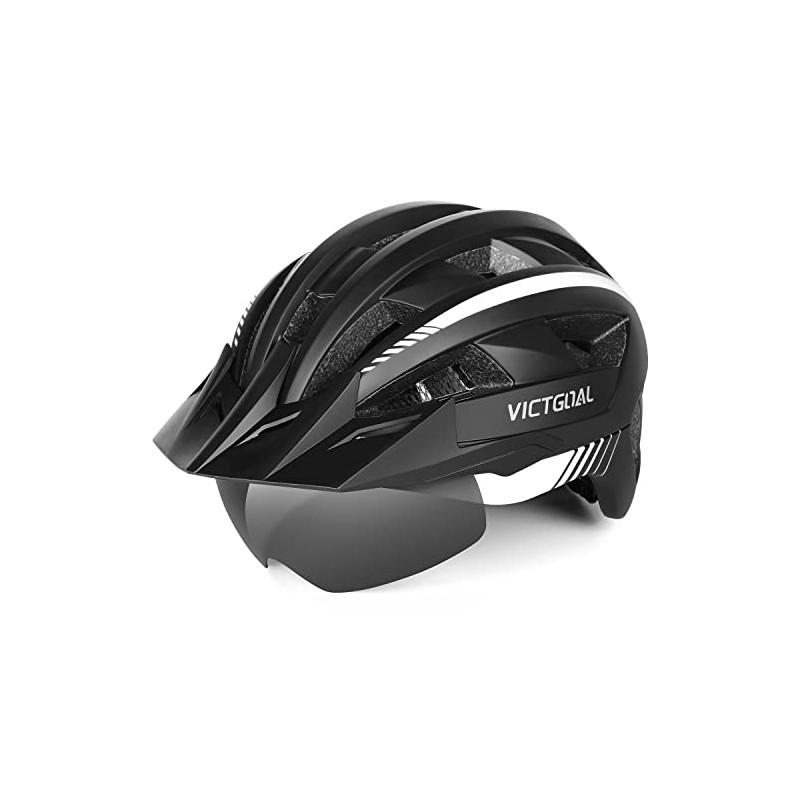 - Magnetic Helmet Goggles and Visor: This VICTGOAL bike helmet with visor and goggles, it is an ideal bike helmet for mountain bike and road bike cycling. You can put the goggles and visor together, not only can protect your eyes from sunlight, but also can protect your face against the sand and wind. It also won’t interfere with wearing your own glasses.