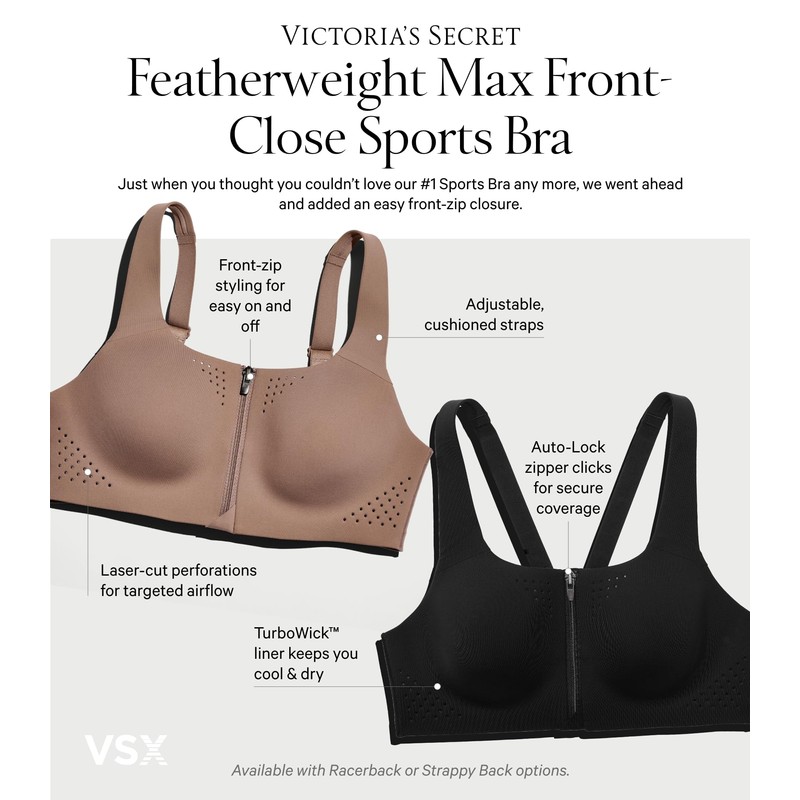 - Just when you thought you couldn't love our #1 Sports Bra any more, we went ahead and added an easy front-zip closure. Maximum support meets maximum comfort in this ultra-lightweight, wireless style that retains its shape. It's the perfect travel-ready option for packing in your gym bag or suitcase.