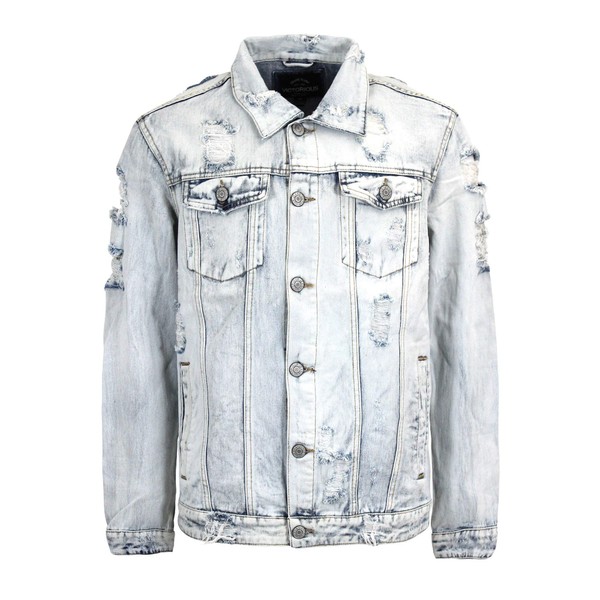 Victorious Men's Casual Distressed Denim Jean Jacket DK100 - Light Indigo - Large