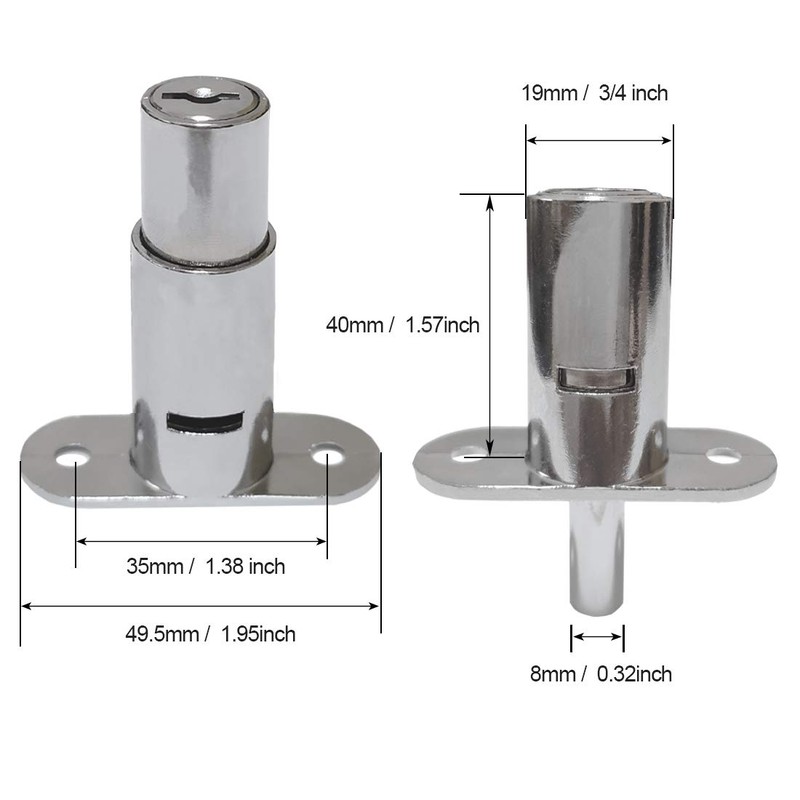 - SIZE - The push plunger lock is 3/4"(19mm) in cylinder diameter and 1.57"(40mm) in cylinder length.