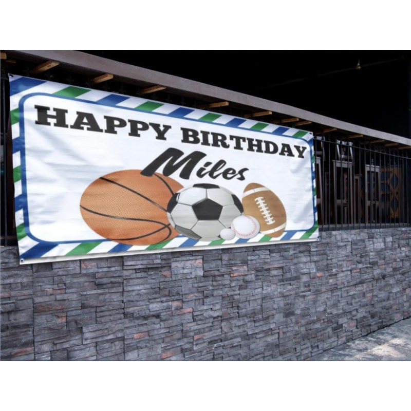 VictoryStore Sports Party Supplies: Sports Banner - Custom Name Vinyl Banner (4x8 Feet)