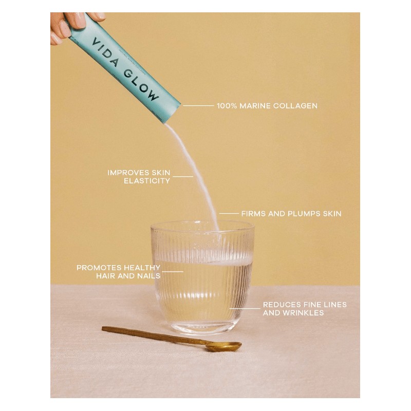 Vida Glow Natural Marine Collagen is clinically proven to smooth fine lines and wrinkles, increase skin firmness and enhance skin elasticity.