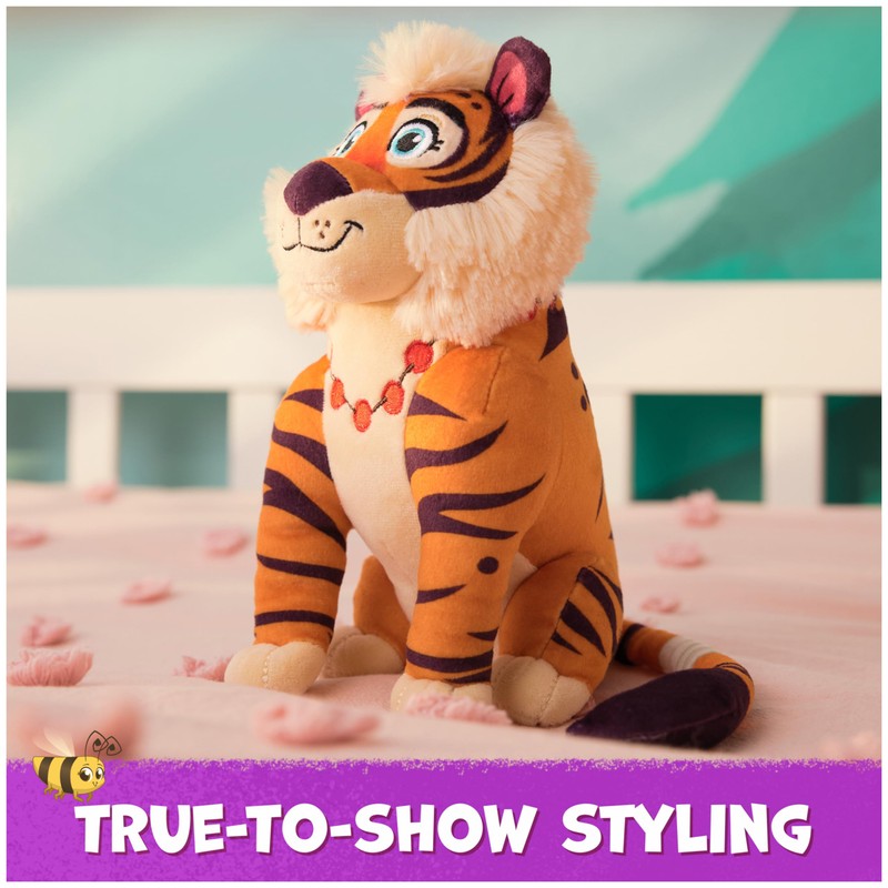 - TRUE-TO SHOW STYLING: With his furry mane, an embroidered necklace, and a bandage printed on his tail, Koa features big, soulful eyes & vibrant tiger stripes, making it a standout among cute plushies.