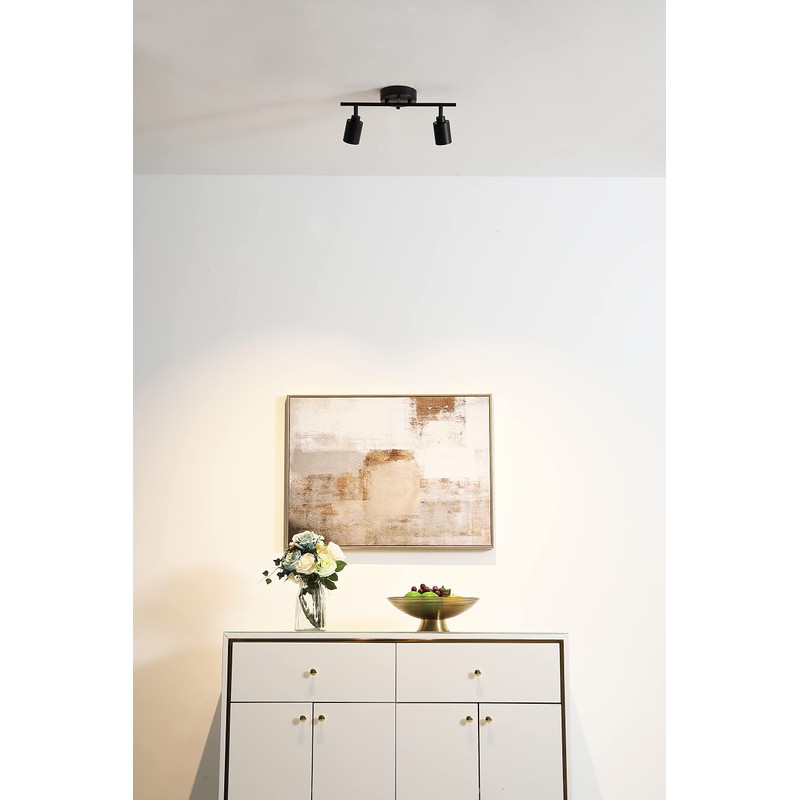 - INTERIOR TRACK LIGHT: This Dimmable fixed rail track light features two rotating spot lights dropping down from a black aluminum track. The lens cap of each head is accented by brushed gold for modern look.
