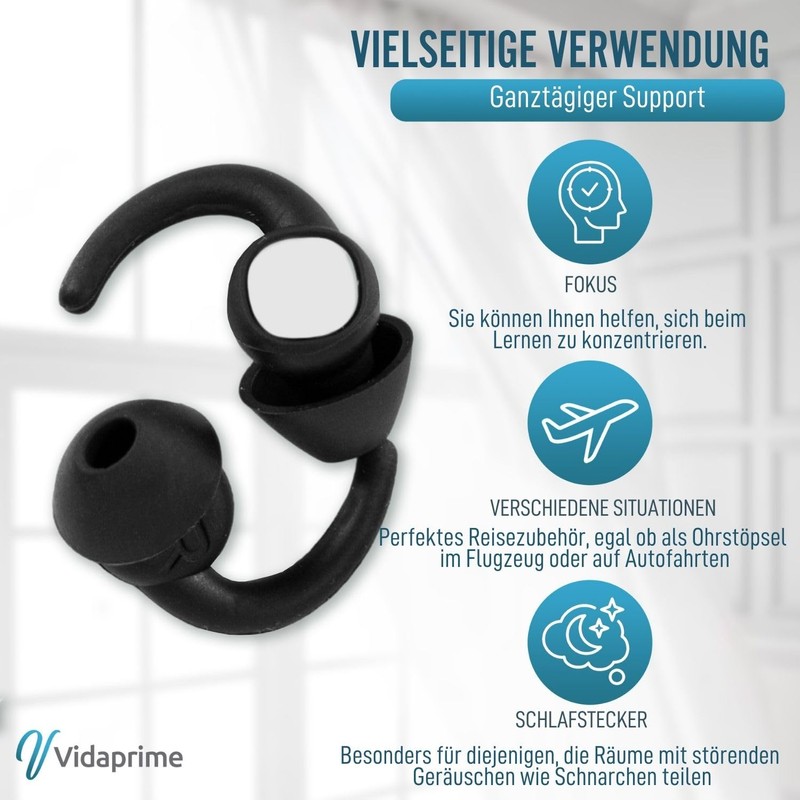 Vidaprime Ear Plugs for Sleeping - Noise Reducing, Comfortable Ear Plugs for Rest and Deep Sleep - Pack of 2 Earplugs for Sleeping and Snoring with Noise Cancellation.