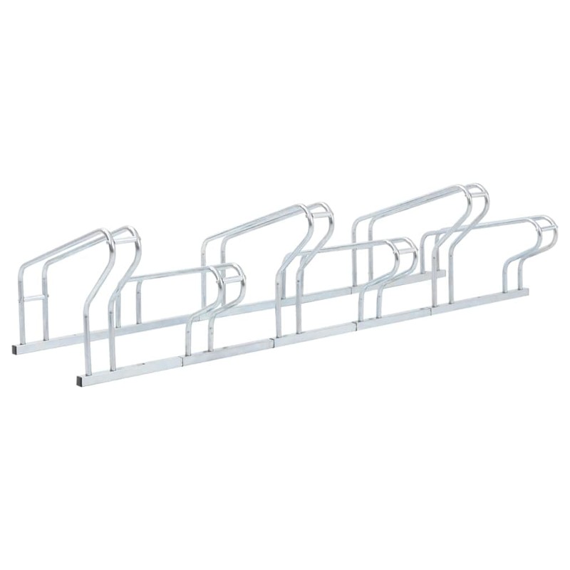 vidaXL Galvanized Steel Bicycle Stand - Floor Bike Rack, Freestanding, Space-Saving, 6-Bike Capacity, Includes Mounting Accessories, Indoor/Outdoor Use, Silver, 64.6"x16.1"x16.5"