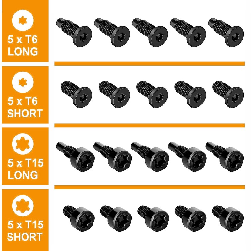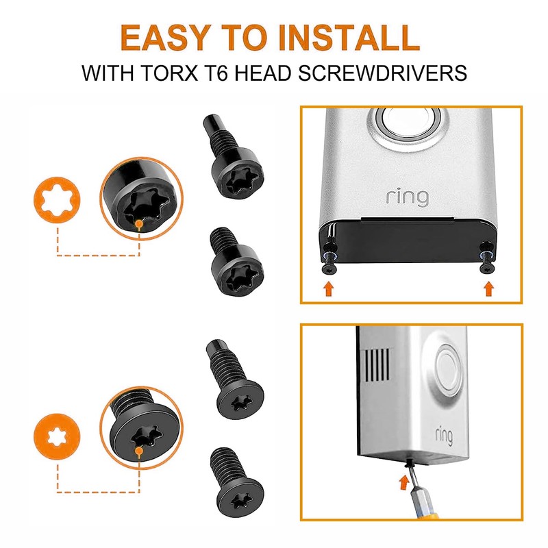 - 【Package Includes】: 4 set / 20 pcs in total. 5 x T6 (short), 5 x T6 (long), 5 x T15 (short), 5 x T15 (long). T15 is longer and the torx head is bigger than T6. Please check your old one or the size to decide which one is fit for your video doorbell.