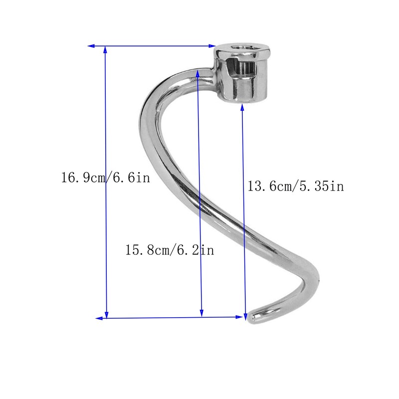 - E gancho de masa espatible con KSMC7QDH de acero inoxidable de 7 cuartos de galón, gancho de masa multifunciol, que puede mezclar ha 7 cuartos de masa. Nota: Comprueba si la longitud del gancho coincide con tu modelo de acuerdo con la tabla de tallas en la imagen antes deprar