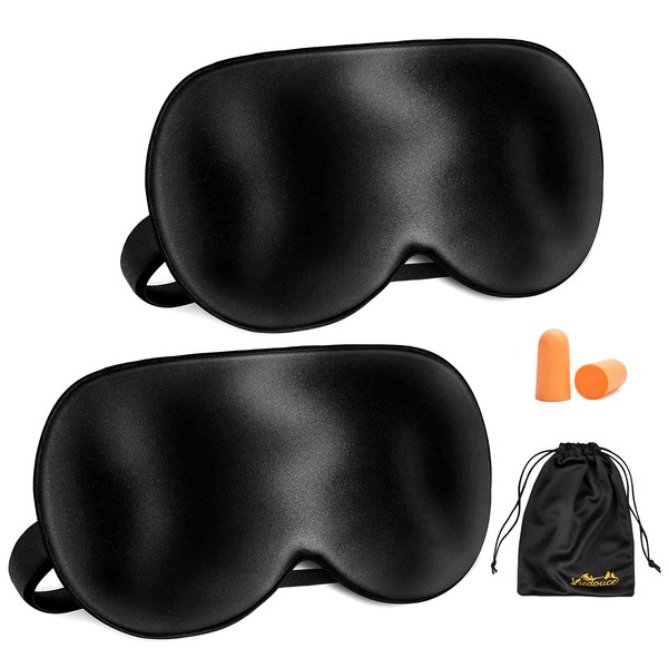 Viedouce Sleep Mask Silk Eye Mask Pack of 2, 100% Skin-Friendly Silk Sleep Mask Women and Men, Comfortable Sleeping Mask, Ideal for Sleep at Home and Travel, Black
