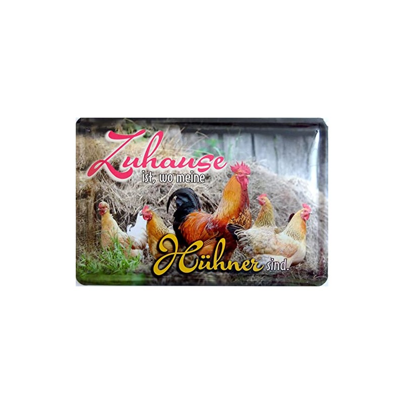 vielesguenstig by Robby Wanka Tin Sign 20 x 30 cm with German Text "Zuhause ist wo Meine Hühner sind Fauernhof Hahn Egg" [German Language