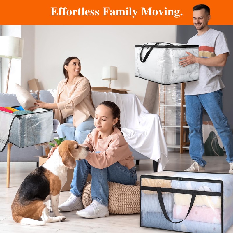 Jede Tasche verfügt über stabile gewebte Griffe, die den Transport einfach machen – ob beim Umzug, beim Verstauen im Kleiderschrank oder beim Transport in den Keller. Leicht, aber robust – ideal als Umzugstaschen, Kleidersäcke oder Unterbett-Aufbewahrung für maximale Raumnutzung.