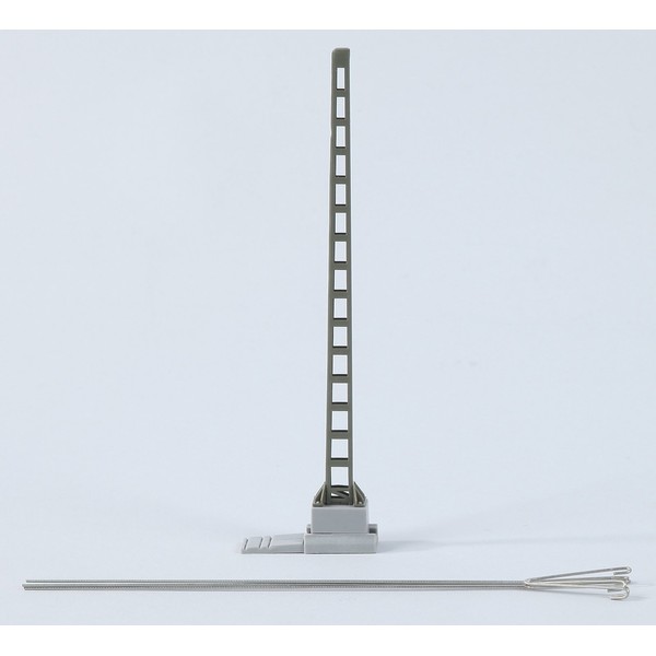 H0 Curved pull-off, triple With assistance of the curved pull-off metal the catenary wire is removed to the track middle. Suitable for 3 tracks, electrically insulated. Filigree metal work. Height: 99 mm.