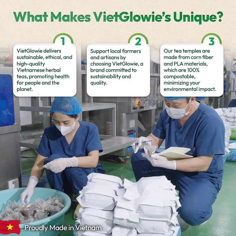 - ALL NATURAL: Made with Ginger, combined with Cinnamon, Brown Rice, Turmeric and Stevia, all sourced from sustainable farms in Vietnam. Support local farmers and artisans by choosing VietGlowie, a brand committed to sustainability and quality