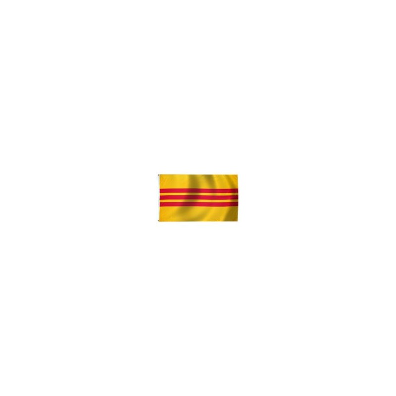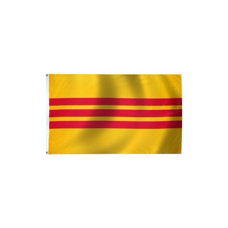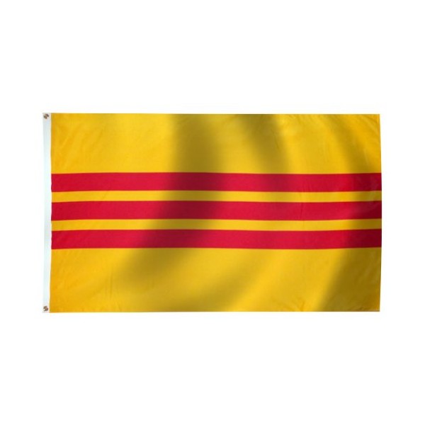 This 2x3 foot Vietnam (South) flag is made from 100% Invista SolarMax nylon fabric with a heavy-duty bright white canvas heading. This flag has two brass grommets in the header to use when securing it to the rope of an outdoor flagpole using flag snaps. (Made in the U.S.A.)