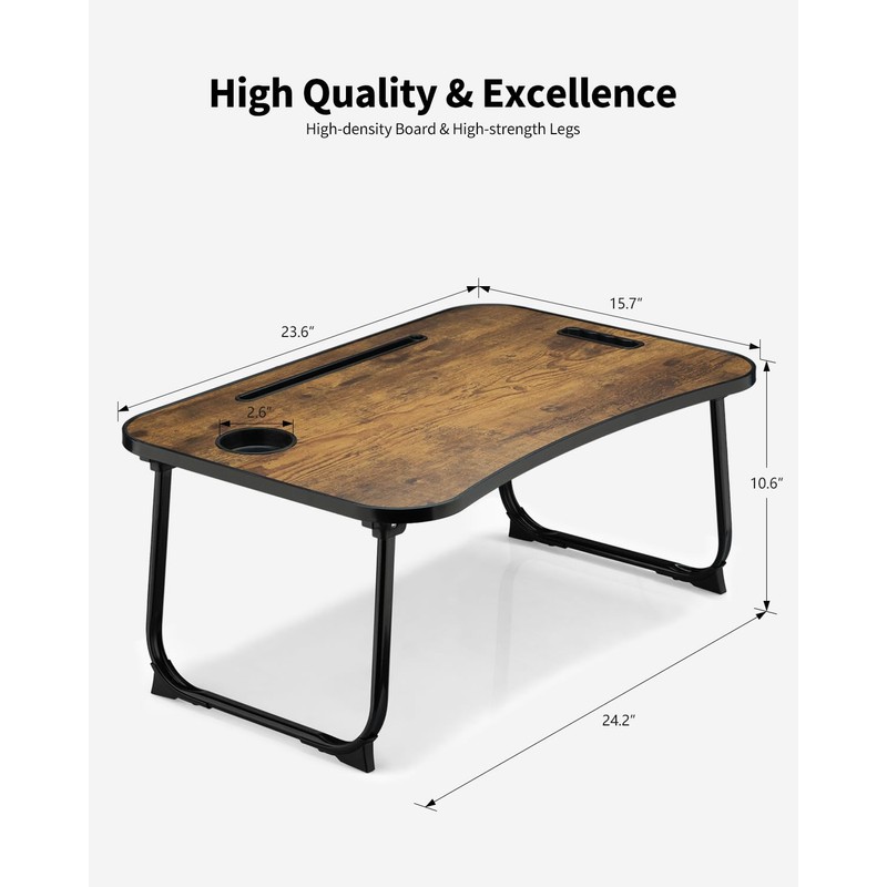 VIFOCAE Foldable Lap Desk, Laptop Bed Desk, Portable Lap Table, Laptop Bed Table with Cup Holder & Tablet Slot & Lifting Handle for Working Writing Drawing & Eating - Rustic Brown