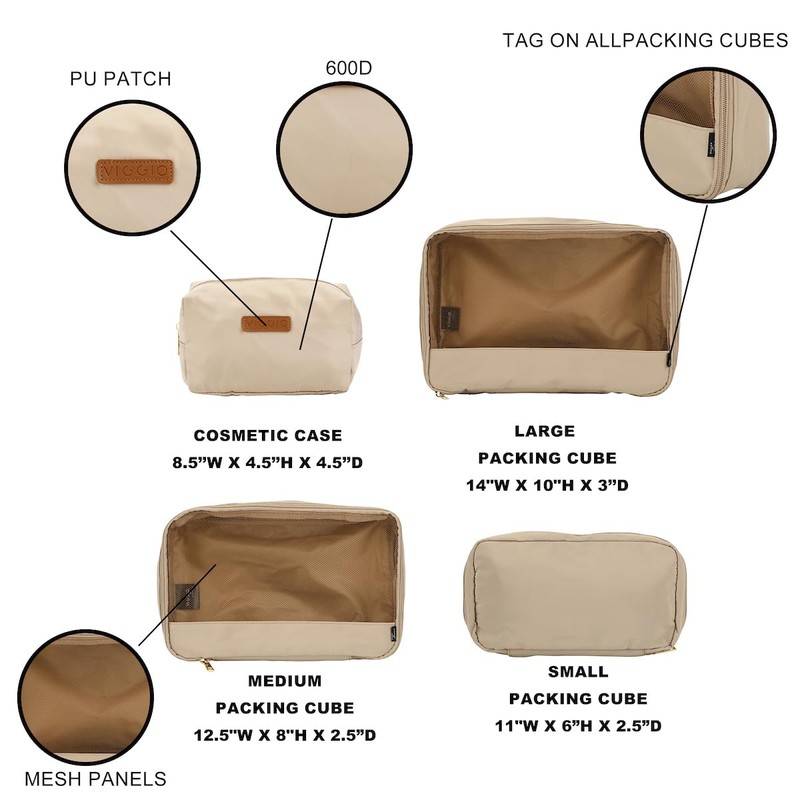 Viggio 8-Piece Packing Cube Brown Luggage Set