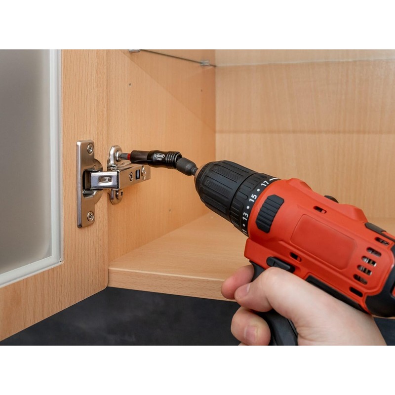 - Practical: when it gets tight and high screw forces are required, the bit holder with joint can be inserted. The special design prevents unwanted rolling of the bits/screwdriver bits.