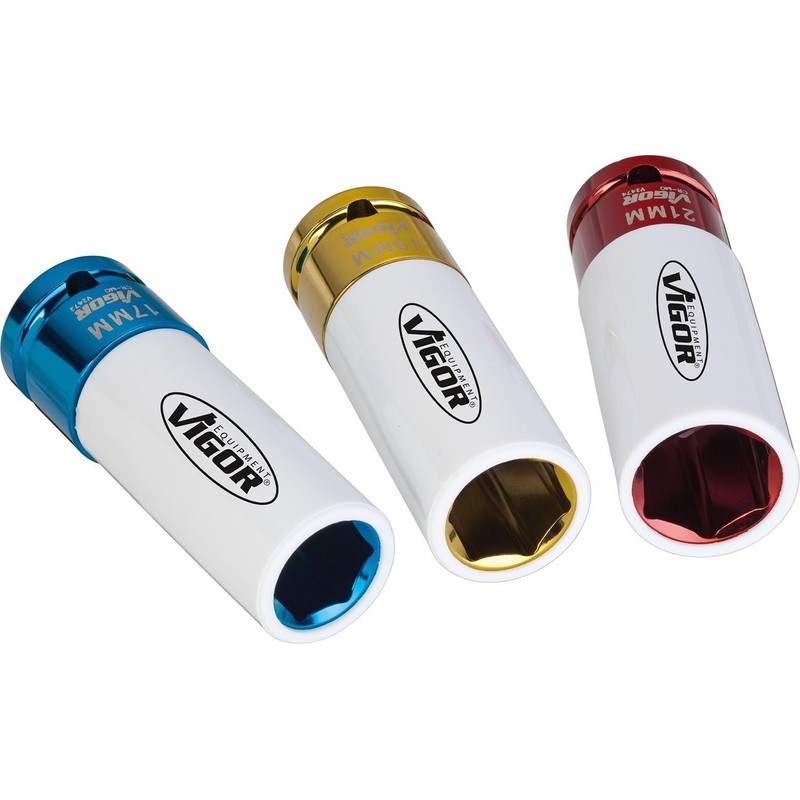 - Box contents: 1x ViGOR impact wrench socket set V2522 I tools: 3, drive: square 12.5 mm, output: external hexagon I spanner width: 17, 19 and 21 mm I device dimensions: 85 mm