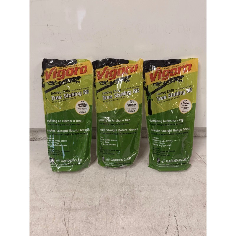 Vigoro QTY 3 KITS Vigoro Heavy Duty Tree Support Stake Kits w/ 15" Stakes, Rope, Tubes