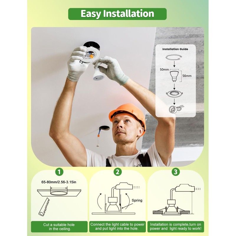 - [Leicht zu Entfernen]: Die Spots Rahmen ist leicht zu entfernen. Entfernen Sie einfach die innere Spiralfeder, um die Glhbirne zu ersetzen, ohne den gesamten Rahmen zu demontieren, was Ihnen Zeit und Geld spart