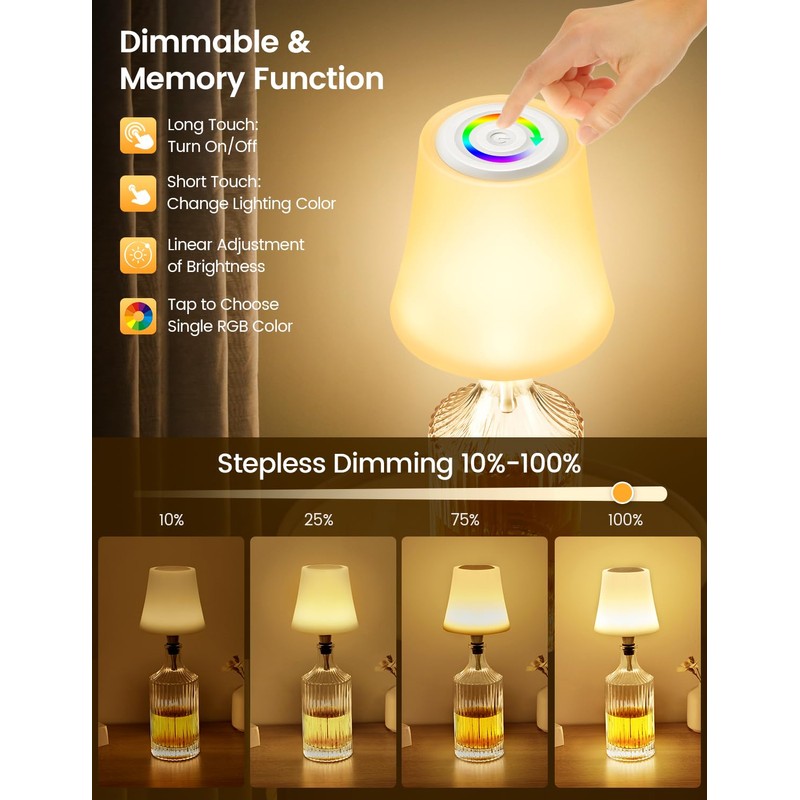- [Touch Control und Speicherfunktion] LED Akku Flaschenleuchte hat ein Touch-Design, ber??hren Sie die Ein-/Aus-Taste f??r 3 Sekunden, um es einzuschalten, und Sie k?nnen das Licht durch Ber??hren des Bedienfeldes des Lichtkopfes einstellen. Die Flaschenlampe hat eine Speicherfunktion, um die zuletzt eingestellte Farbe, den Beleuchtungsmodus und die Helligkeit zu speichern