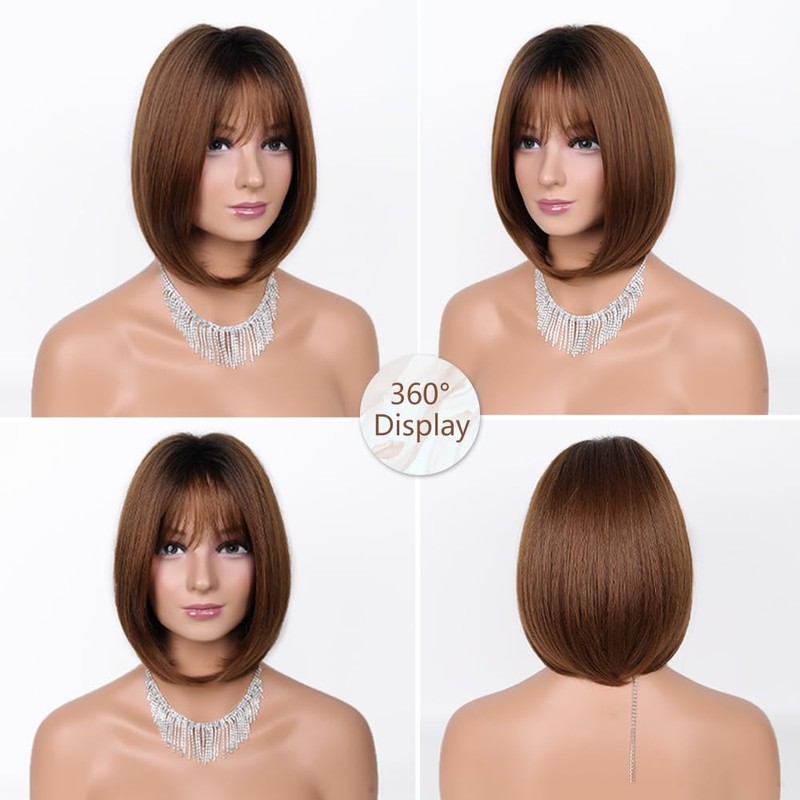 - Brown bob wig for women is made of heat-resistant fiber,the texture is very natural and soft,less tangling and shedding.short bob wig can be worn for a long time if you care this wig regular.