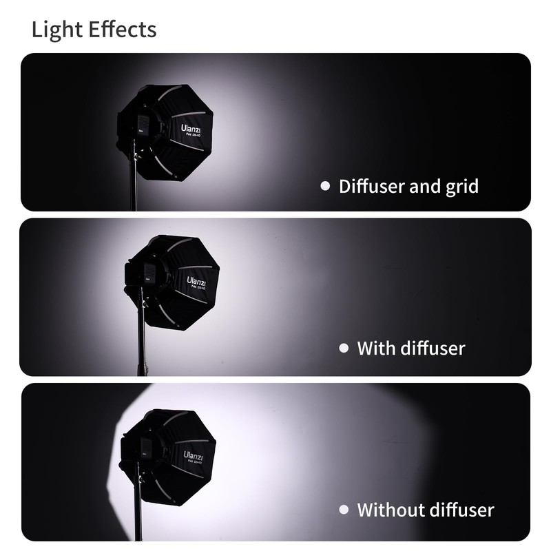 - Born for Versatility: Dual diffuser and grid bring nice soft and even lighting.