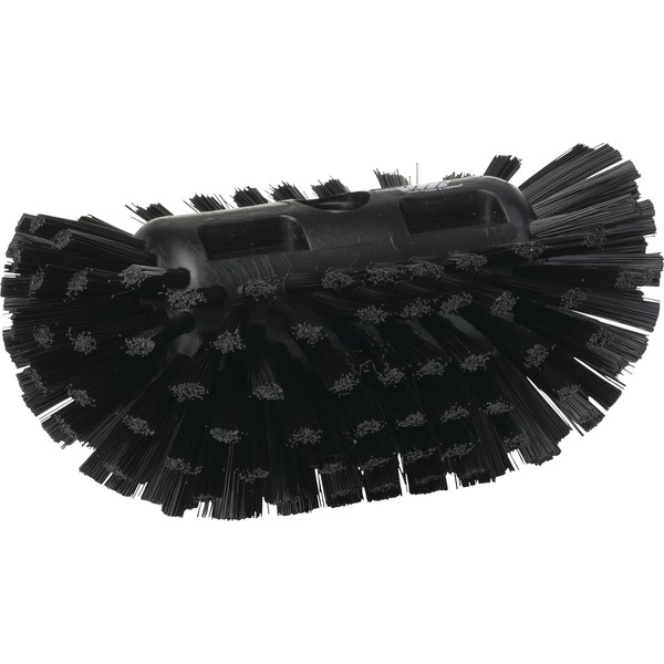 The oval-shaped brush with stiff bristles is effective for scrubbing inside large industrial tanks and other large container-like equipment. The rounded edges work well to clean down the sides of equipment. It also fits well into large channel drains.