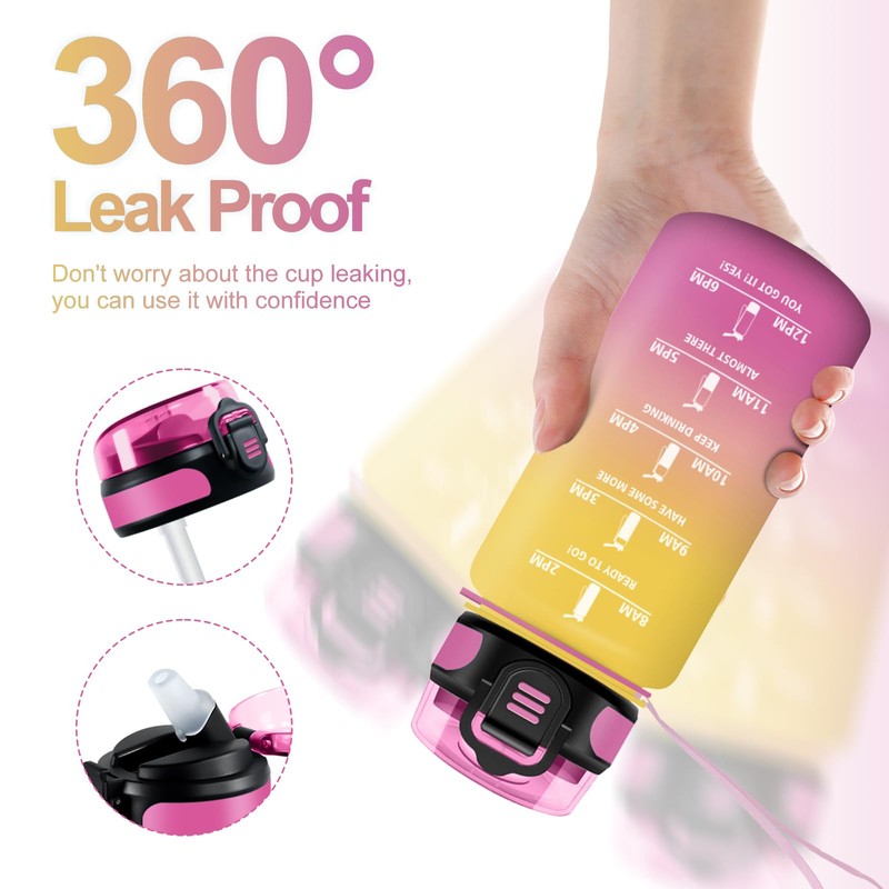 - Intelligent design: leak-proof sports drinking bottle has a cap with a pressure and a wider mouth to water the water and some fruits with ease. The matte, matte body with colour shading gives you a firm hold and does not slip easily