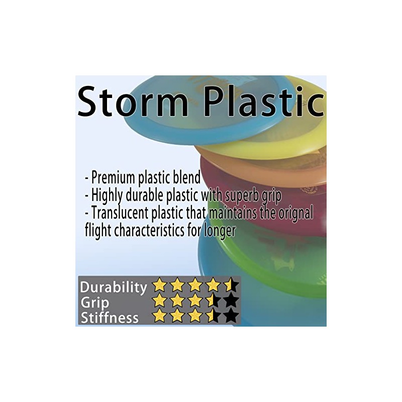 - Storm Plastic: a durable plastic blend that is transparent and long lasting. This plastic will help the disc to keep its original flight path over time despite the abuse while on the course.