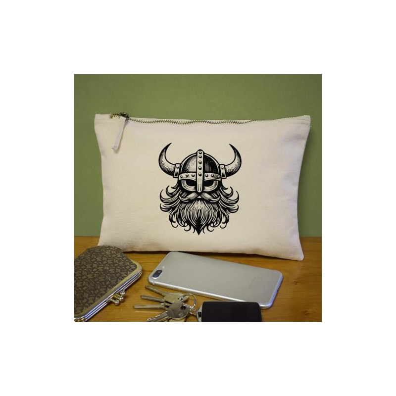 'Viking Head' Canvas Clutch Bag/Accessory Case (CL00039030)