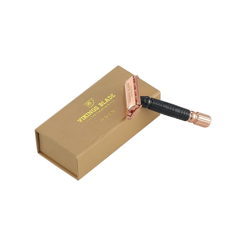 VIKINGS BLADE Double Edge Safety Razor for Men + 5 Swedish Steel Blades + Luxury Case. Smooth, Reusable, Eco-Friendly (Chieftain “Odin”)