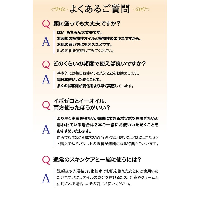 - 同シリーズの「イポゼロα (イボゼロ アルファ) 」とセットでご使用いただくのもおすすめです。天然植物成分でお肌にやさしいのでフェイスケアにもお使いいただけます。伸びが良いのでまずは少量からお試しいただき、お肌の状態をみながらご調整ください。