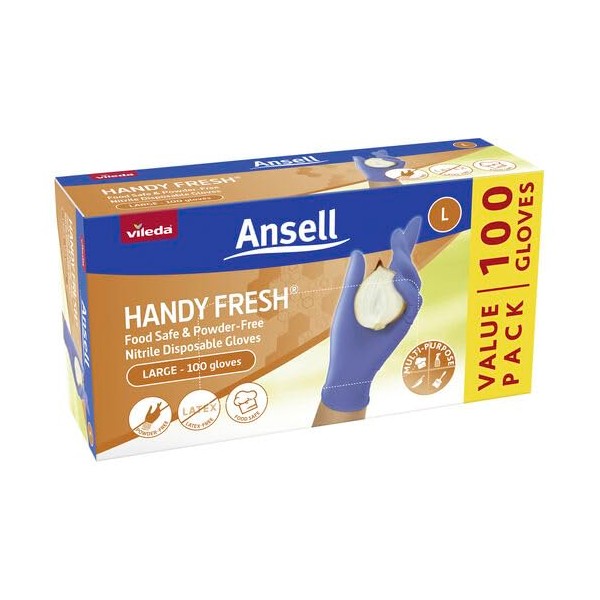 Vileda Ansell Handy Fresh Nitrile Gloves 100 Pack Large