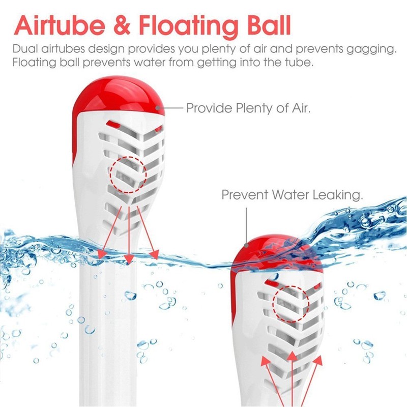 - ★DRY-TOP VALVE & SAFETY – A ball on the top of the snorkel seals it automatically when you are submerged. Then the water cannot enter. Safe and soft silicone prevents allergic skin irritation and other skin problems.