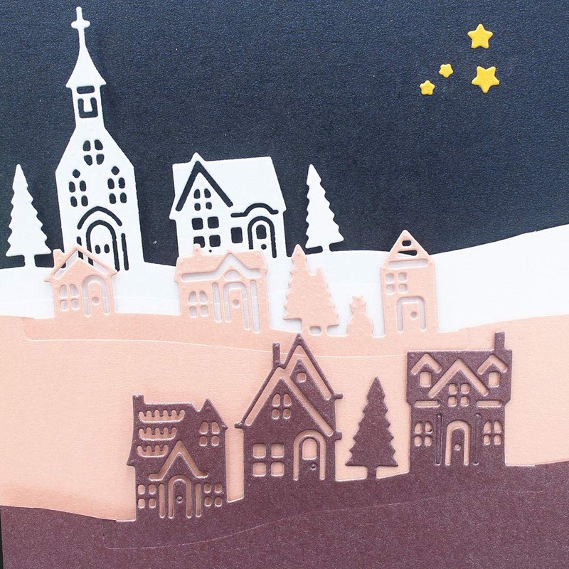 Village House Metal Cutting Dies Stencil Template Molds, Embossing Tool Die Cuts for Card Making Album Paper Scrapbooking DIY Etched Dies Craft