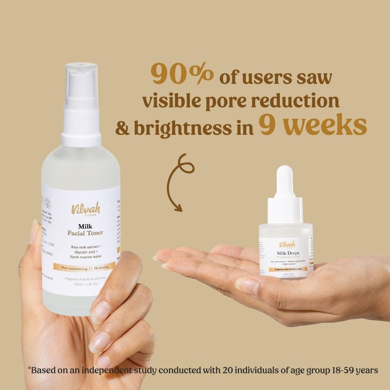 Vilvah Store Skin Hydrating Combo | Milk Drops Serum | Milk Face Toner | Minimizes Pores and Hydrates Skin | Balances & Restores Skin's pH Levels