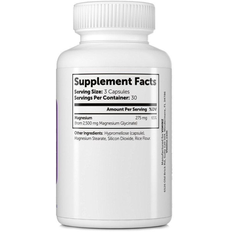 Viminz Calm Magnesium, 275mg per 3 Capsules, 90 Vegan Capsules, Unbuffered, Glycine Chelated, High Absorption*