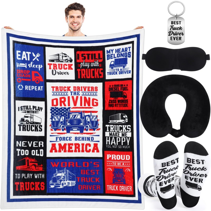 - Truck Driver Appreciation Gift Set: this trucker gifts for truck driver includes a trucker blanket, a U shaped pillow with 1 eye mask set, a pair of cotton socks, and a trucker keychain; A comprehensive set designed to meet every trucker's comfort needs of the journey
