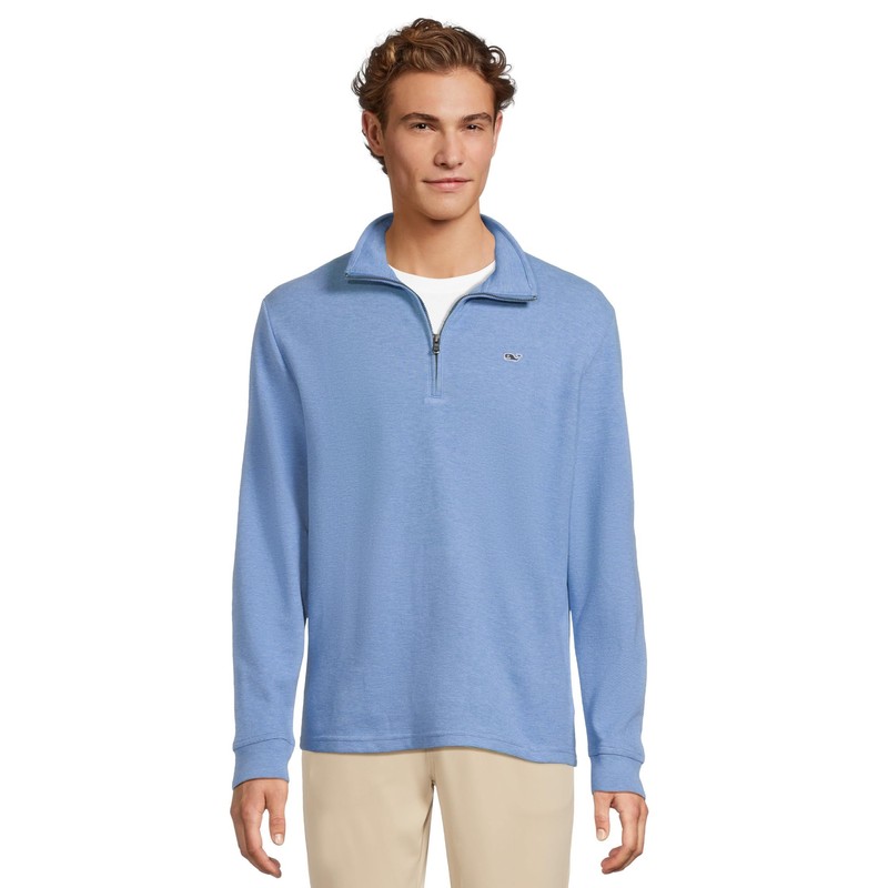 vineyard vines Men's Saltwater Quarter-Zip, Hull Blue, Medium