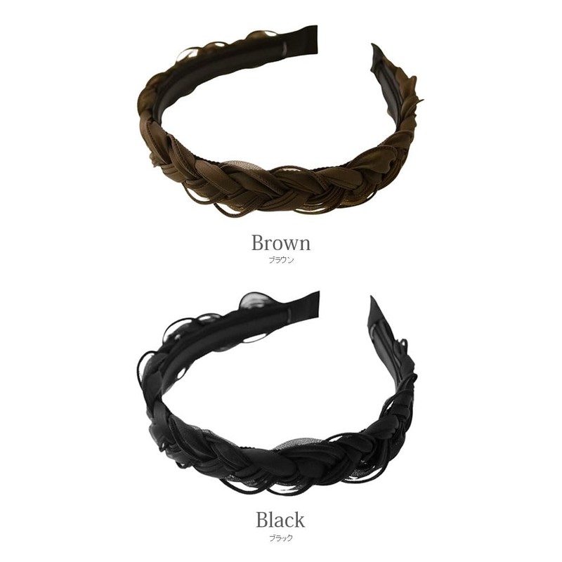 VINGTAINE HK-355-BK- Braided Headband with Different Materials, Twist Braid, Chiffon Head Accessories, Hair Accessories, Adult Casual, Simple