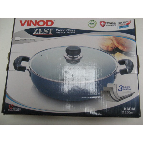 Vinod Non Stick Kadai with glass lid 26 cm with 3 Layer Coating