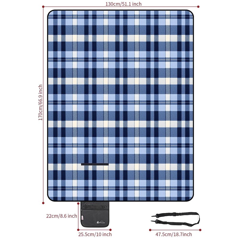 Vinsani 170 x 130cm Folding Picnic Blanket Waterproof & Sandproof Backing - Ideal for Camping & Outdoor Picnic – Checkered Rug Mat with Carry Handle