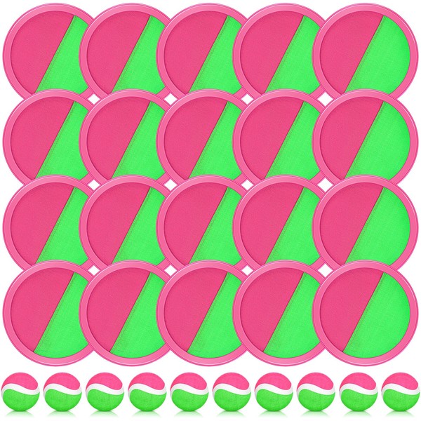Vinsot Toss and Catch Ball Game Toys 20 Paddles 10 Balls Yard Lawn Games Beach Toys Catch Game Paddle Ball for Outside Backyards Playground Games Family Teens Adults (Light Pink and Green)