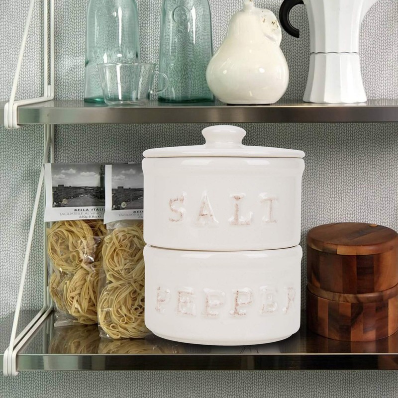 - Stackable salt box for storing an assortment of table salt and pepper, gourmet salts, herbs,spices or favorite seasonings close at hand on your countertop.