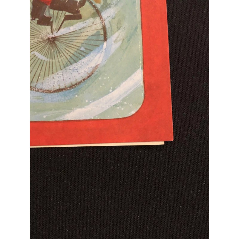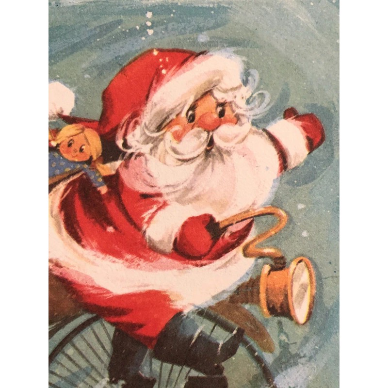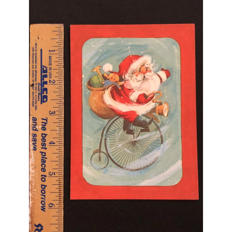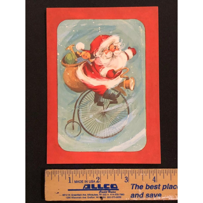 Vintage Christmas Card Cute Santa Claus Riding Unicycle with Toy Sack NOS w/ Env