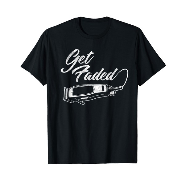 Vintage Distressed Barber - Get Faded Clippers Script Tail T-Shirt